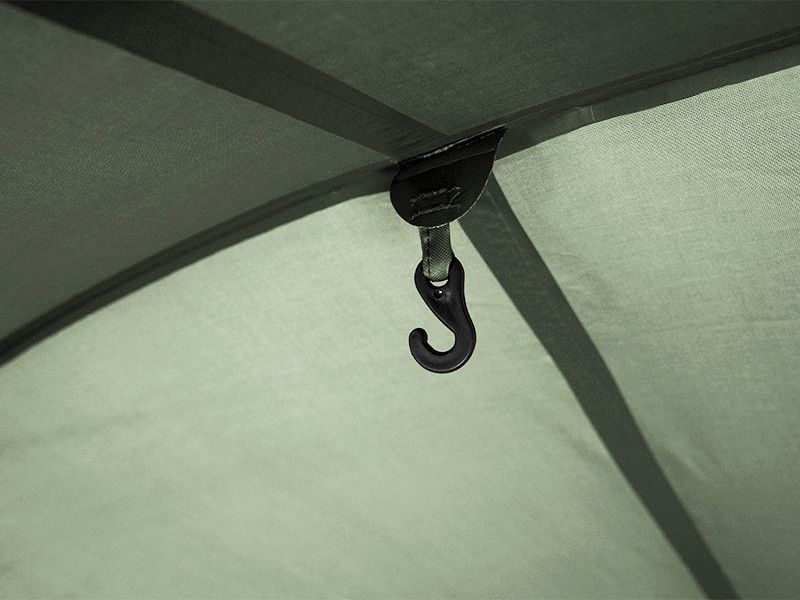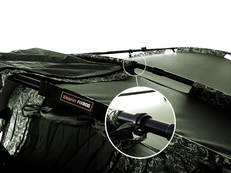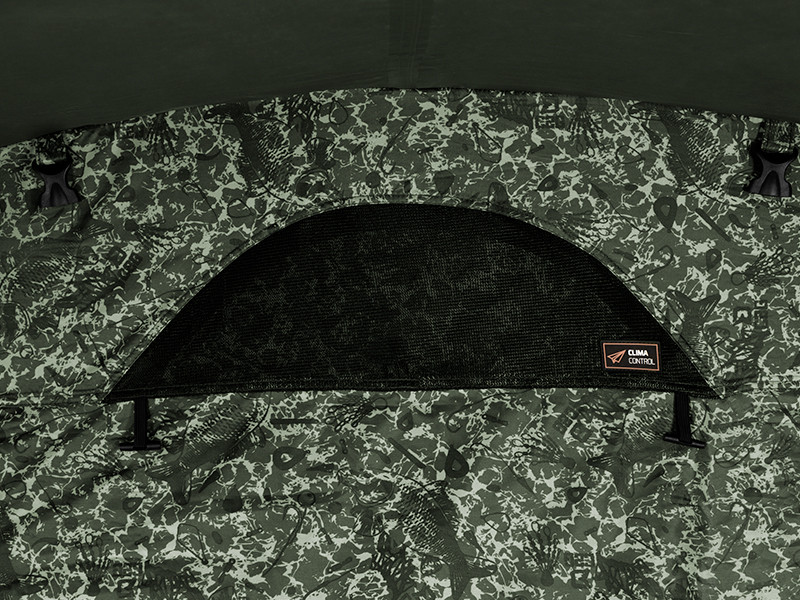 Odpowiedni flagowiec w kategorii namiotów, tym razem w zielonym kolorze z ekskluzywnym opatentowanym kamuflażem C2G firmy Delphin. Namiot C-3 LUX C2G jest przeznaczony dla najbardziej wymagających wędkarzy. Wyjątkowo mocna konstrukcja stelażu z trzema pałąkami gwarantuje bezkompromisową stabilność w każdych warunkach pogodowych. Wraz z zastosowaną tkaniną najwyższej jakości i całkowicie podklejonymi szwami wytrzymuje również silne burze, wiatr i dużą ilość opadów. Niezaprzeczalnym atutem namiotu jest tkanina z popularnym wzorem C2G, która z pewnością zachwyci wszystkich fanów tego oryginalnego kamuflażu. Dzięki dużym wymiarom w namiocie bez problemu zmieści się 2 łóżka, pozostawiając jednocześnie w środku dużo miejsca na torby i inne elementy wyposażenia potrzebne do wygodnego pobytu nad wodą. W razie potrzeby wnętrze może pomieścić do 3 łóżek. Oczywiście są też dwa uchwyty do mocowania wędek, ale też duży daszek, który zapewnia ochronę przed słońcem czy deszczem. Wewnątrz dodatkowo 2 haczyki na suficie, na których można zawiesić np. lampę.
