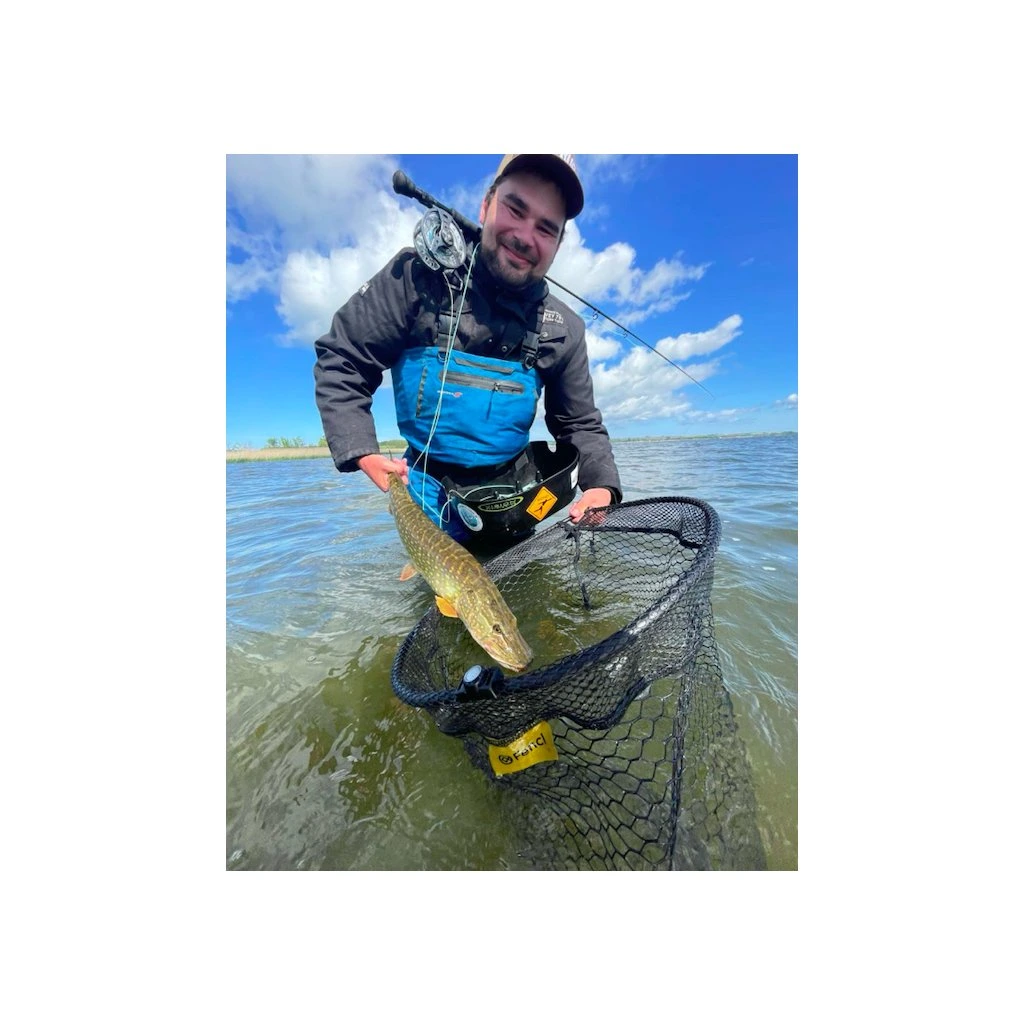 Podbierak z przedłużonym uchwytem z możliwością mocowania magnetycznego z tyłu, dzięki czemu podbierak jest zawsze pod ręką. Konstrukcja metalowa, przedłużone uchwyty: karbon, twarde drewno, magnes o sile 6,2 kg