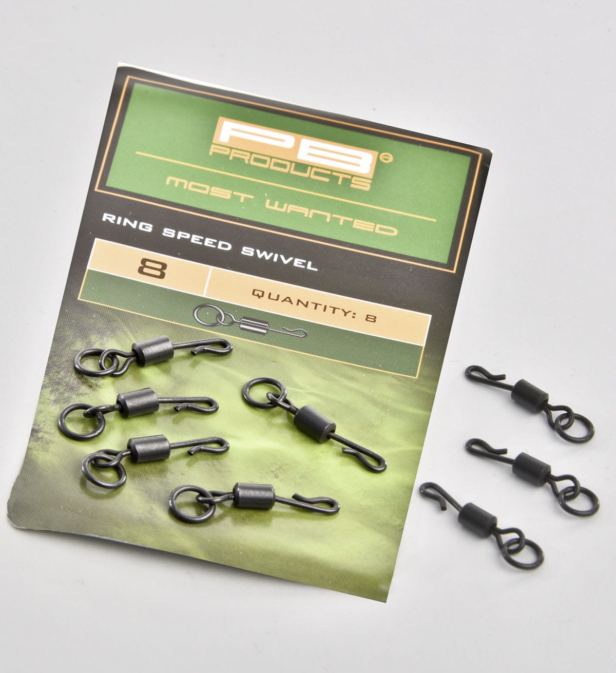 Szybkozłączka do szybkiej wymiany przyponów z dodatkowym kółeczkiem, powodującym swobodne obracanie przyponu.