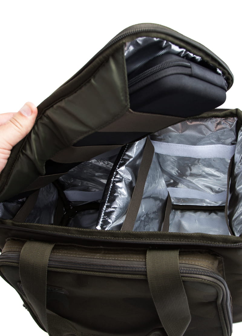 Torba termiczna SONIK SK-TEK COOL BAG została zaprojektowana z myślą, by zapewnić maksymalną wydajność i funkcjonalność przy przechowywaniu produktów w niskiej temperaturze. Posiadają unikatowy pokrowiec na toster/patelnię, wzmocnioną izolację podstawy i ruchomy rozdzielacz na rzepy, co pozwala trzymać osobno produkty schłodzone i zamrożone. Podwójny suwak pozwala wyjmować rzeczy z boku lub z tyłu, a wewnętrzne przegrody trzymają butelki i bloki mrożące pionowo. Kieszeń przednia zawiera elastyczne uchwyty na sztućce. Ponadto po bokach znajdują się uniwersalne, dodatkowe kieszenie siatkowe. Torba ma również wytrzymałą, wodoodporną podstawę, odczepiany pas na ramię oraz odczepiany uchwyt na butelkę.